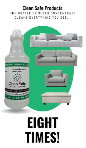 Clean Safe Products uses a Soap-Free, Odorless, and Non-Toxic Concentrate. It breaks down the bond between the dirt and the fabric fibers without leaving anything behind.